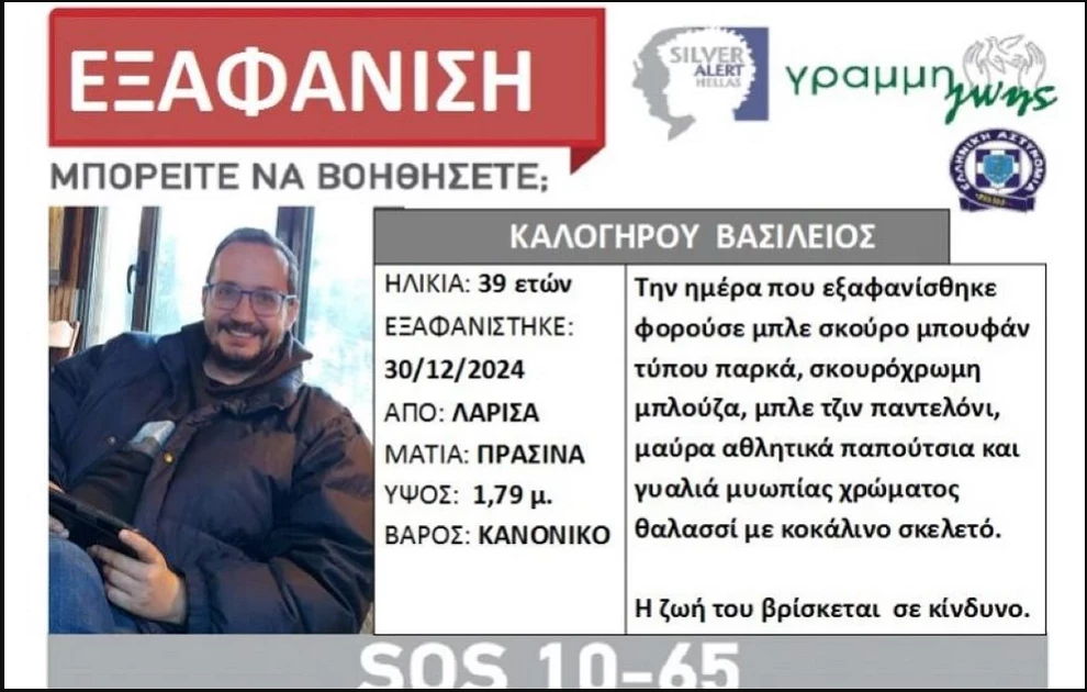Ο άνδρας ήρθε για τις γιορτές στους γονείς του στη Λάρισα, αλλά έχει να δώσει σημεία ζωής από την προηγούμενη Δευτέρα, όταν κι έφυγε από το σπίτι για μια βόλτα.