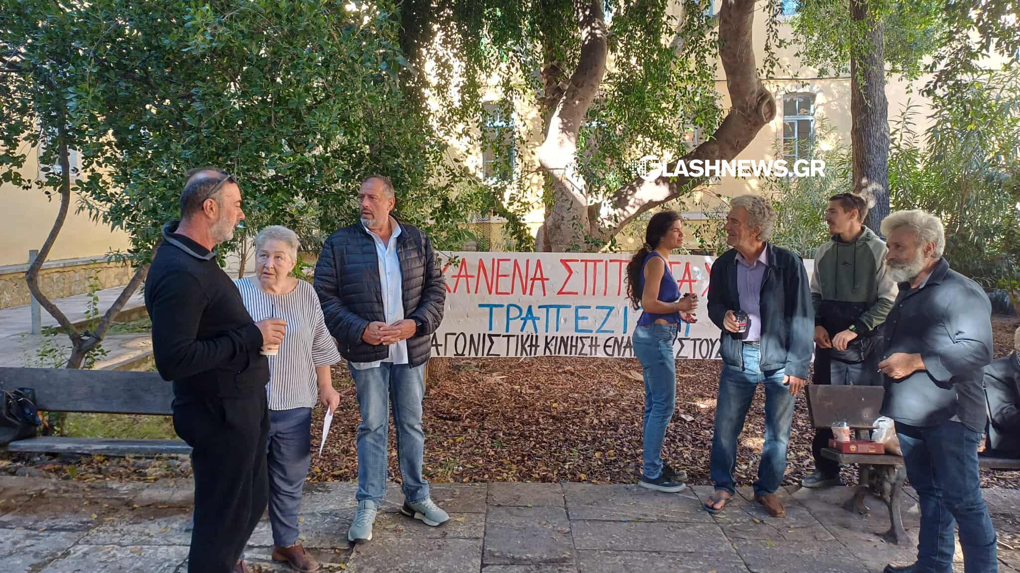 Στον αύλειο χώρο των δικαστηρίων, στο πλευρό της οικογένειας, βρέθηκε η Αγωνιστική Κίνηση κατα των Πλειστηριασμών.