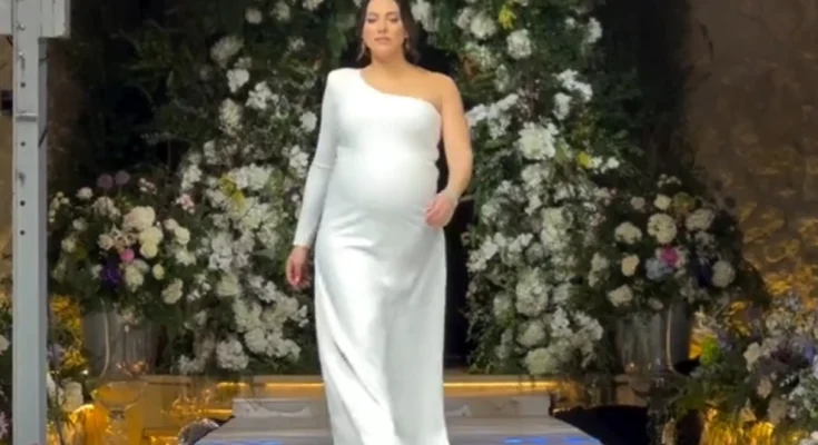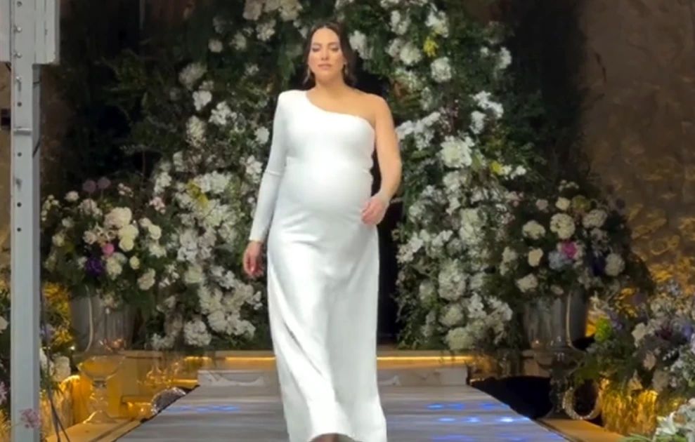 Η αθλητικογράφος έκλεψε τις εντυπώσεις με την εμφάνισή της, καθώς περπάτησε με αυτοπεποίθηση και χάρη στην πασαρέλα, φορώντας ένα μακρύ, κολλητό νυφικό που αναδείκνυε την εγκυμοσύνη της.