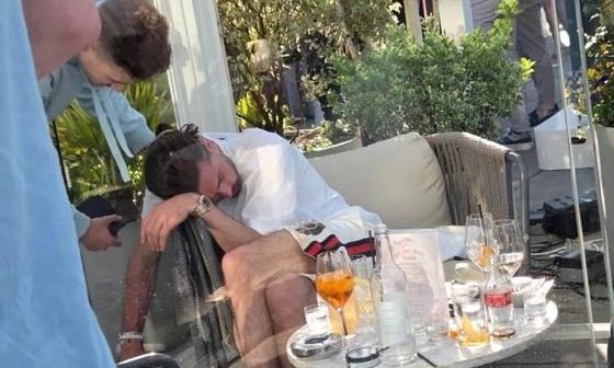Σύμφωνα με τους θαμώνες του μαγαζιού που τράβηξαν και τις φωτογραφίες, οι φίλοι του Γκρίλις προσπαθούσαν να τον ξυπνήσουν, όμως…